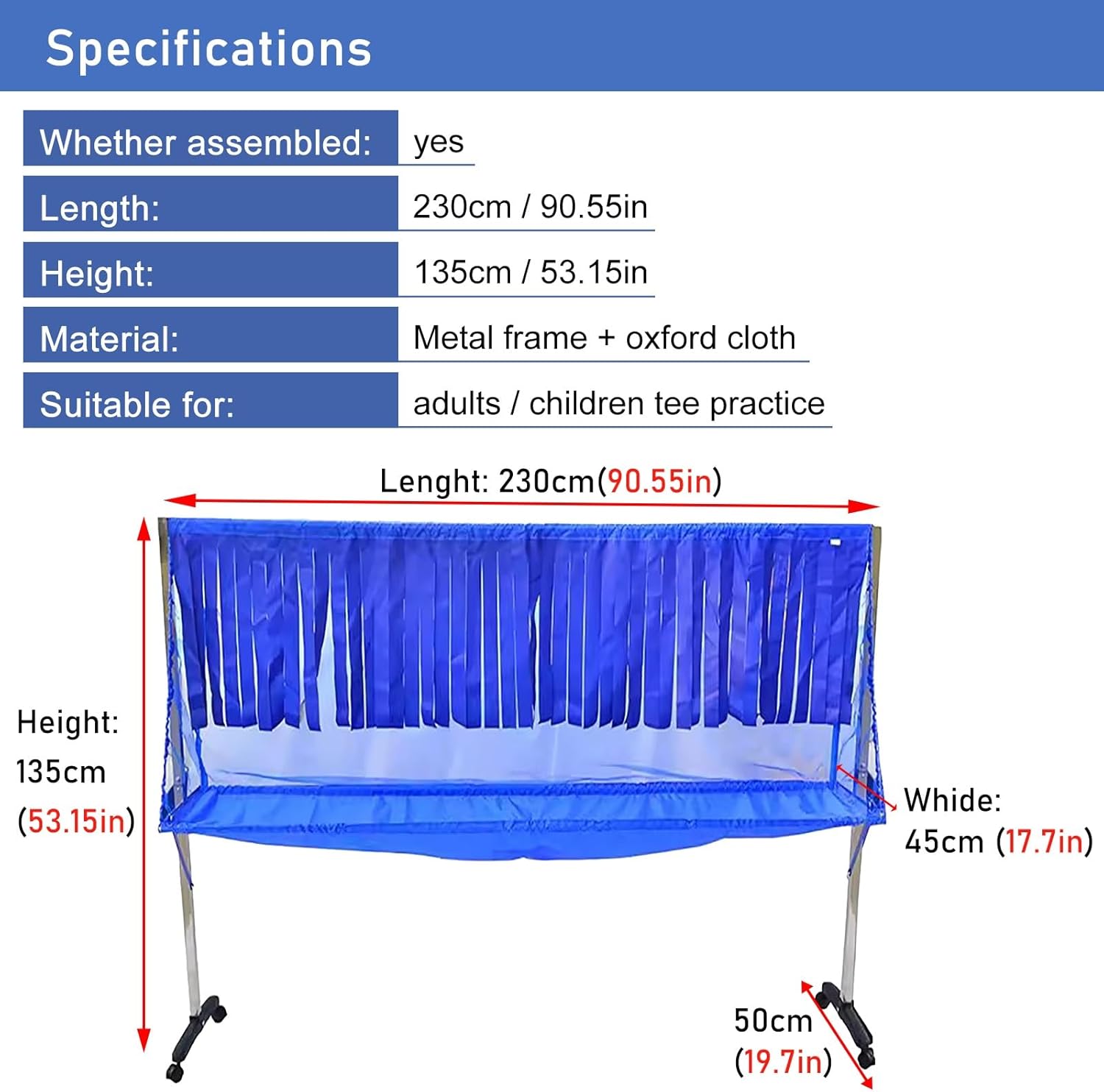 Still struggling to practice picking up the ball in table tennis? The Table Tennis Pick Up Net is the perfect addition to your table tennis training. Will work with all tables unlike other ball catch nets. that attach directly to your ping pong table. Keeps balls off the floor so you're ready to go again much faster. Makes practicing your table tennis shots easier and more fun. Specifications - Name: Mobile Table Tennis Net - Size: 230x135x45cm/90.55x515x17.7in - Whether assembled or not: yes - Weight: 7kg Features : - Universal wheel with brake, easy to move and fix - High efficiency to catch the ball without rebound - Play inside or outside for girls, boys, adults, and family - Easy to install and easy to use table tennis catching net - Directs the ball to the centre of the net without missing the ball - Suitable for multi-ball practice and the use of vs brands of ball machines Package Includes : - 1 x Table tennis net (Includes mounting accessories) - Table tennis balls and bats not included Note: - Children need to use it under adult supervision.
