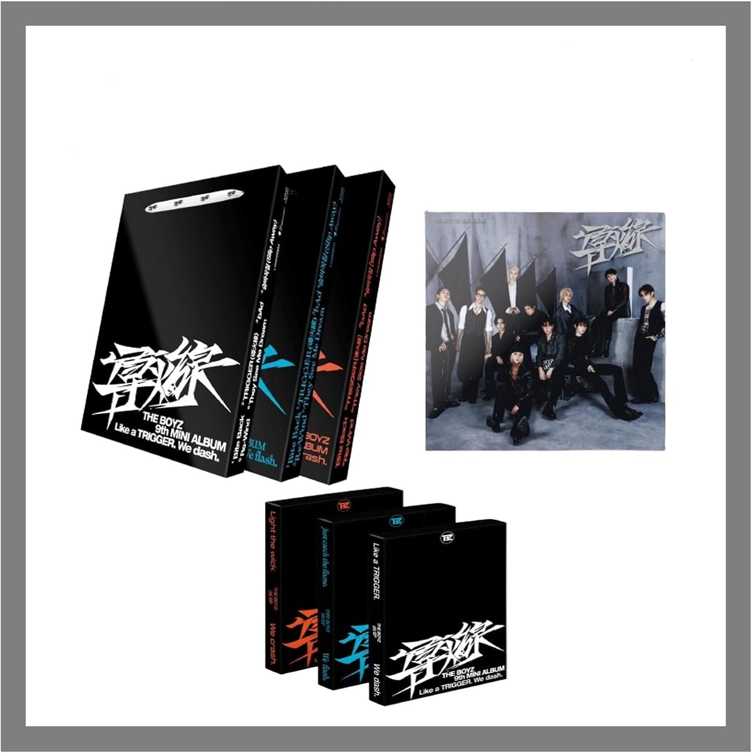 THE BOYZ 導火線 도화선 TRIGGER FUSE 9th Mini AlbumRelease Date - 29th October 2024-Standard Contents- CD+96p Photo Book+1p Post Card+6ea Track Stricker +1ea Card Sticker+2p Photo Card+Free Tracking Number.-Platform Contents- Case+1p QR Card+1p Selfie Photo Card+11p Official Photo Card +2ea Sticker+Free Tracking Number.-Pioneer Contents- CD+80p Photo Book+2ea Logo Sticker+1p Post Card+2p Photo Card +1p Folded Poster on Pack+Free Tracking Number.Platform Version does not include a disc.3 Ver Set includes 1ea Random Standard+1ea Random Platform+1ea Pioneer.Tracklist. 01. Bite Back 02. TRIGGER(導火線) - Title 03. bAD 04. 숨바꼭질(Slip Away) 05. Re-Wind 06. They See Me Dream✔All products provide authentic brand-new items directly from manufacturers, delivered in sealed packaging. ✔All albums contributes the HANTEO & GAON Chart; all items include tracking and secure packaging.