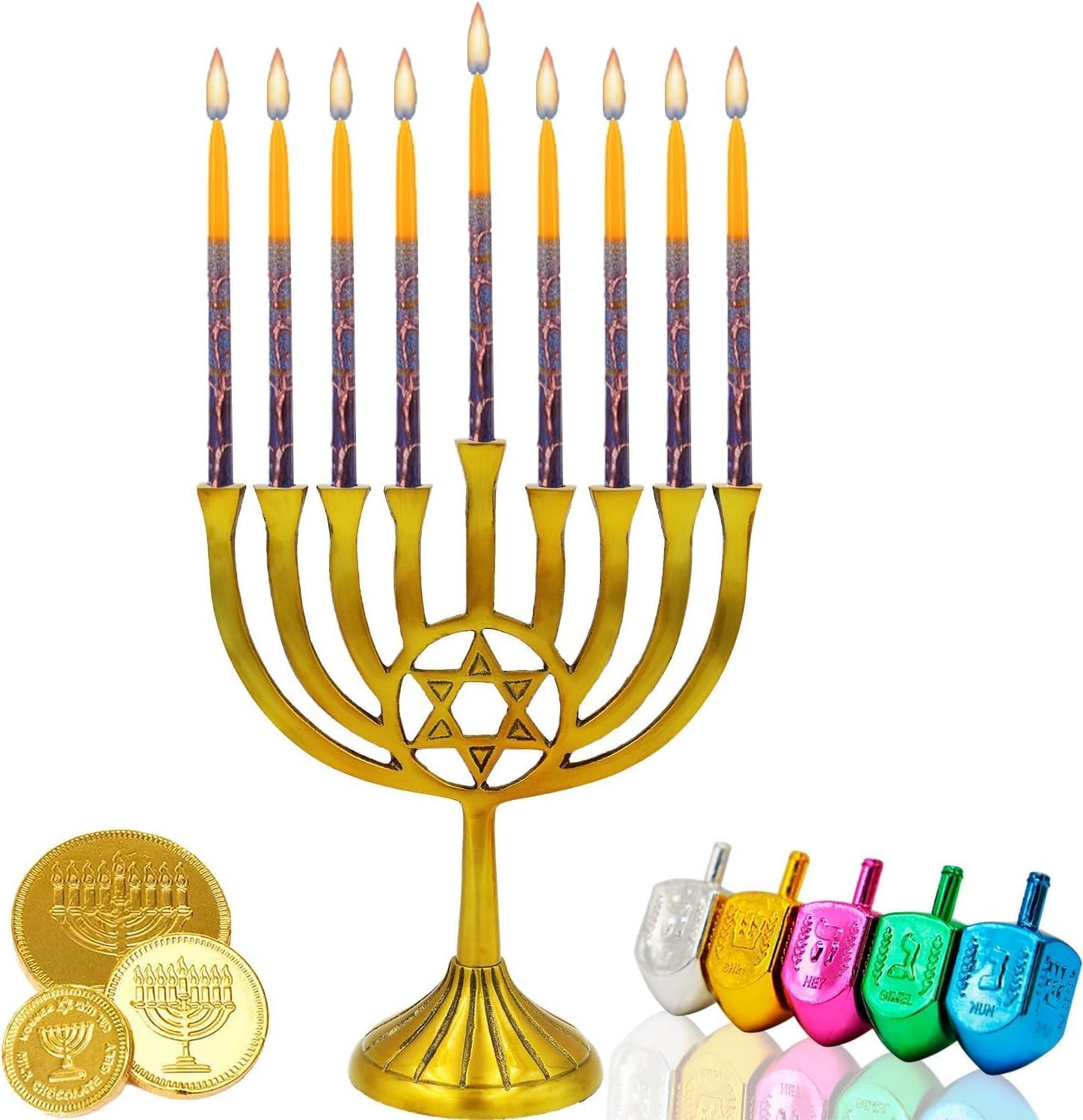 MULTI-COLORED DECORATED: These classic candles will really brighten your Hanukkah experience. 45 Hanukkah Candles Decorative Multi Colored Purple, Blue, Orange wtih Orange Stripes - Hand Made in Israel. GOOD FOR MENORAHS FOR 8 NIGHTS: The Candles are sized 3/8” diameter at the bottom to accommodate most Candle Menorahs with ease. Candles are 5 1/2” long for an elegant slender display. 45 Candles Enough for all 8 nights including the Shamash Candle. BEST CHANUKAH PRESENT: A great Jewish and Judaica gift, these candles make the perfect chanukah gift for kids and adults, and they can be use all year long for all kinds of occasions and parties. CERTIFIED KOSHER: Kosher & Meets All Halachic Requirements. Stays Lit At Least 60 Minutes Premium Quality Wax 3/8” Standard Size Fits Most Menorahs 45 Count per Box