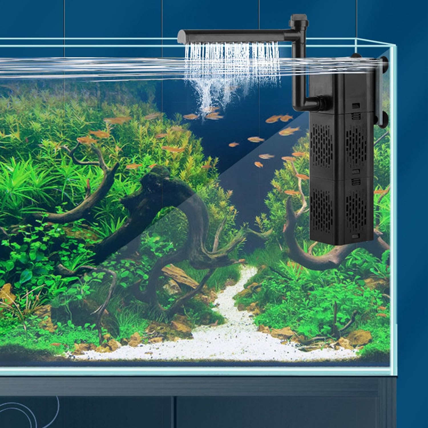 Feature: 1. 3 Modes: This fish tank filter is designed with rainfall mode, aerating mode and circulation mode, and it can be connected with different accessories, you can adjust the waterflow and waterflow direction as needed, you can also connect a hose at the water outlet to change the water. 2. Multiple Stage Filtration: This aquarium internal filter supports multiple stage and biological filtration for aquariums, which can remove waste and replenish aquariums with a reliable waterflow. 3. Oxygen Supplement: This aquarium filter can also double as an aeration system too because the bubbles that come out from the top increase the dissolved oxygen levels in the water. 4. Wave Making Function: This submersible power filter is equipped with wave generator and cotton filter. Filter material can be replaced or added according to your preference. Suitable for 250 to 350L large fish tank. 5. Ultra Quiet Operation: This submersible aquarium filter runs ultra quietly. Low wattage and high waterflow without air inside the filter, generates no noise. Your family life will not be affected, at the same time achieving water purifying effect. Specification: Item Type: Fish Tank Filter Material: Plastic Power: 30W Waterflow: Maximum 1800L/H Raise: 1.8 Meter / 5.9ft Recommended Fish Tank Size: Within 120cm / 3.9ft Suitable Fish Tank Capacity: 250 to 350L Package List: 1 x Pump2 x Cotton Filter 1 x Hose Adjustment Valve 4 x Suction Cup 2 x Rainfall Pipe 2 x Water Outlet 1 x Accessory 1 x User Manual
