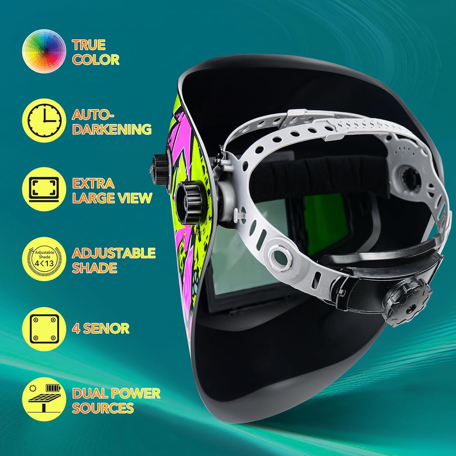 TRQWH Panoramic 180° Large Viewing Welding Helmet Auto Darkening with Side View & Large Capacity Welding Backpack for Men