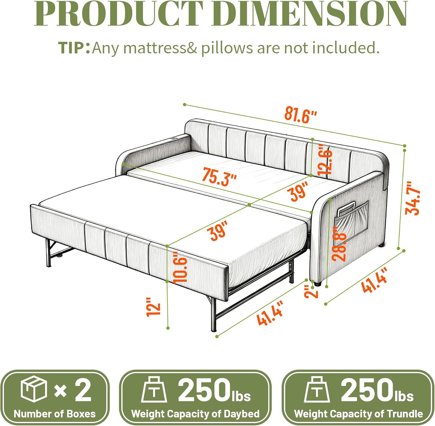 | Item Dimensions L x W x H | 41.4"L x 81.6"W x 34.7"H |