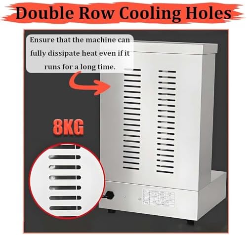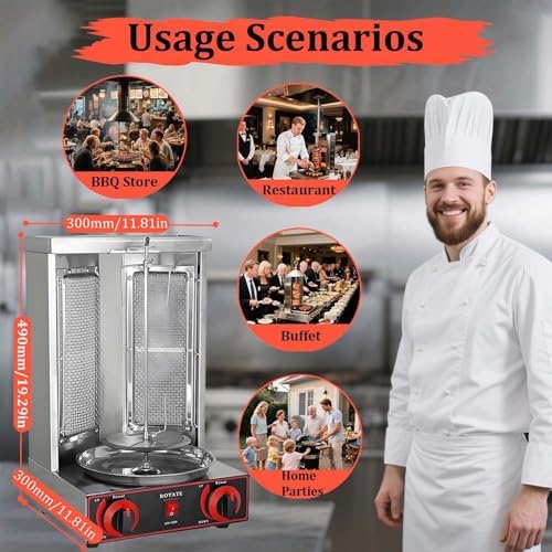 Introducing the Professional Vertical Rotisserie Shawarma Machine – your ultimate companion for effortless and delicious roasting at home or during gatherings. **Key Features:** ✅ **Large Capacity & Efficient Heating**: This vertical rotisserie can accommodate over 13 lbs of meat, making it ideal for serving 6-7 people. With dual adjustable infrared burners, it heats quickly from 122°F to 572°F, ensuring your meals are cooked to perfection in less time. ✅ **360° Smokeless Rotation**: Experience even cooking with our automatic rotating skewer that guarantees all-around browning. The separate drip tray effectively collects excess fat, preventing splashes and reducing smoke, resulting in a cleaner grilling environment. ✅ **Dual Fuel Options**: Choose between gas and electric models tailored to your cooking preferences. The combination of high-efficiency burners and versatile power sources allows you to enjoy the convenience of quick and tasty meals in any setting. **Specifications:** - **Model Types**: Available in Gas & Electric Versions - **Heating Power**: 3000W (Electric) | 2800Pa Pressure (Gas) - **Voltage**: 110V/220V (Electric) | LPG Compatible (Gas) - **Temperature Range**: Adjustable from 122°F to 572°F - **Capacity**: Up to 13 lbs - **Material**: Durable Stainless Steel (Body & Frames) - **Product Dimensions**: 300×300×490mm (Gas) / 295×265×485mm (Electric) - **Weight**: 8kg (Gas) / 6kg (Electric) **Package Includes**: - 1 x Vertical Rotisserie Oven Grill - 1 x Pressure Reducing Valve (Gas Model) or Power Cord (Electric Model) **Usage Instructions**: For optimal performance, place the machine on a stable, heat-resistant surface. Ensure the drip tray is correctly positioned before use, and always allow the unit to cool down completely before cleaning. Regularly inspect gas connections for safety. Whether you’re hosting a barbecue or enjoying a family meal, the Professional Vertical Rotisserie Shawarma Machine brings the taste of the grill righ...