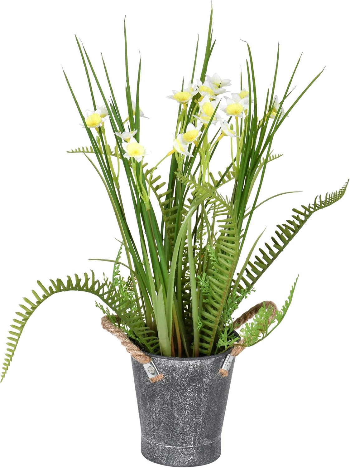 Vickerman 19" Artificial Artificial Daffodil Bush. Add character and beauty to any arrangement with this Daffodil Bush. It comes neatly bundled and ready to drop into your favorite decorative vase. From the kitchen to the dining room centerpiece, farmhouse to the modern home, this plant is sure to inspire. For additional complimentary accents see the many stems and bushes available from Vickerman. This durable plant is maintenance free and will suit any decor. When necessary simply wipe the plant with a dry cloth to remove dust. Vickerman has been an industry leader since 1940. Enjoy this expert designed decoration around your home.