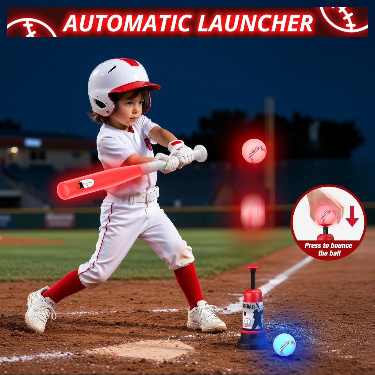 | Included Components | 4 LED Baseball, Automatic Pitching Machine, LED Bat, TBall Set |