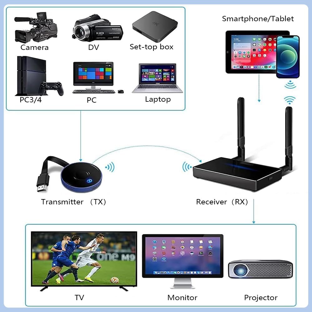 | Other Special Features of the Product | 4K decoding & 5G fast transmission, 98Ft transmission, Dual antenna, HDMI+VAG, Plug and play |