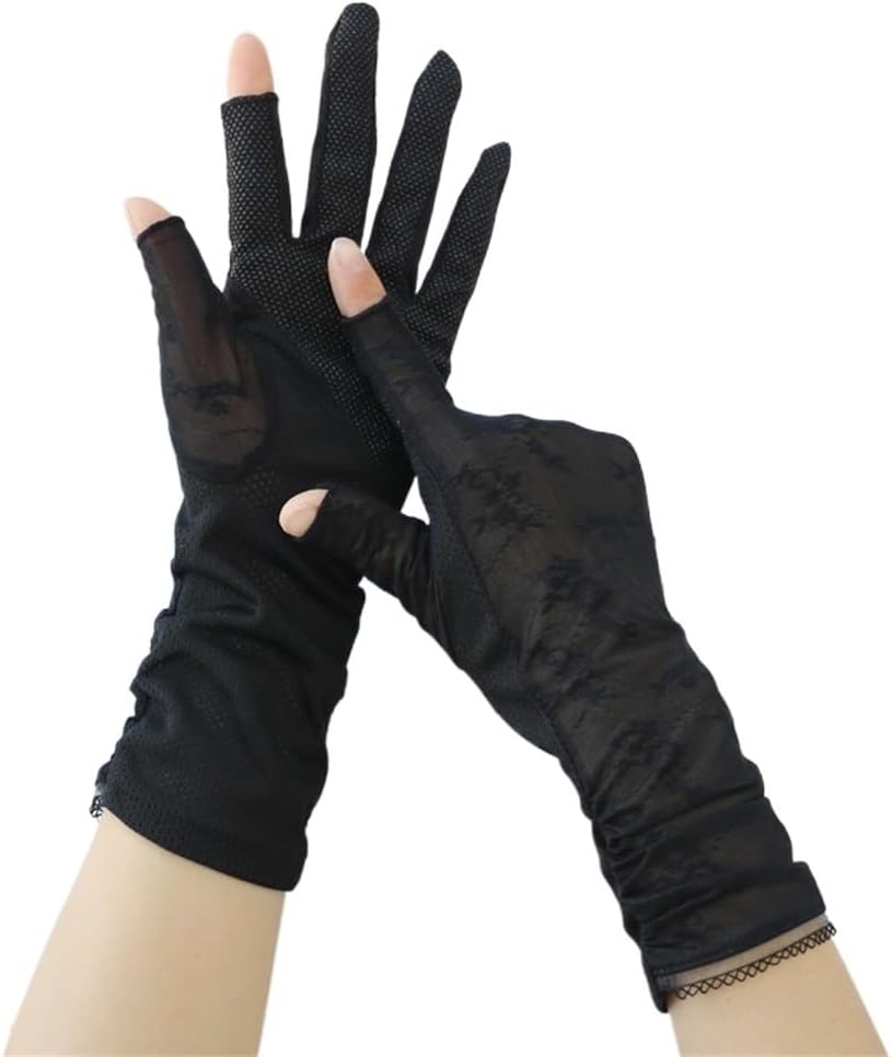 Breathable mesh between fingers and wrist for breathability and perspiration.Two-finger touch screen design allows you to control the phone at any time without removing glovesThe palm has anti-slip function, which is convenient and safe to driveFitting the hand, the cutting line is smooth and natural, which can better modify the hands and make the hands more slender and slender.New technology ice silk fabric, light and breathable, not stuffy.Material: ice silkSize: sizePackage includes: sun protection gloves * 1 pair (does not include other demonstration items)Kind tips:1. Please allow 2-3cm error due to manual measurement.2. Due to different monitors, the color may be different, please understand.Widely Used:Our protection glove not only can be used for gel manicures. It can also be used for outdoor scenarios like fishing, camping, hiking and driving as well. We recommend you to wash the glove before first use to avoid lint to stick to your gel polishes. Customer satisfaction is our first priority.