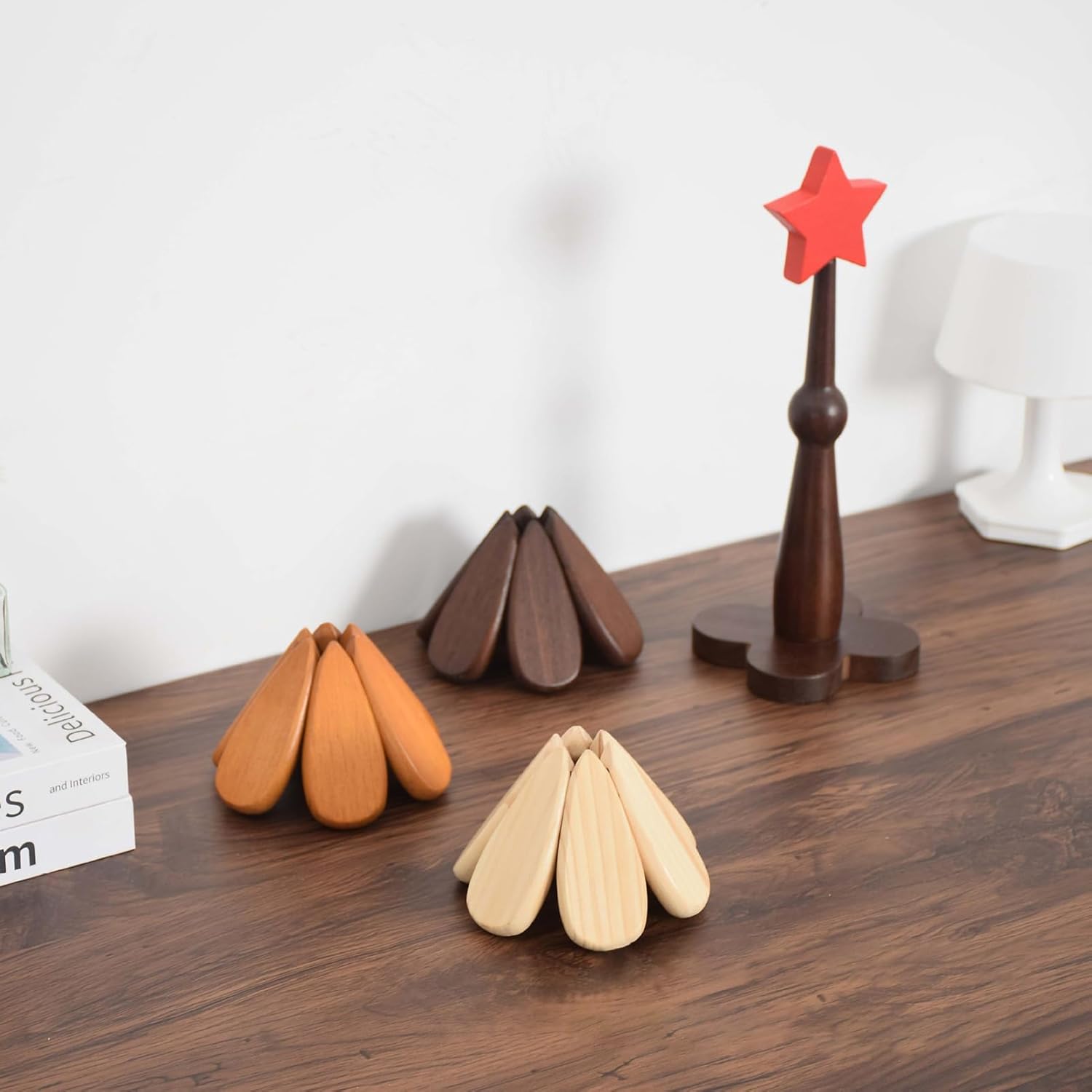 Specification: 1: Material: Wood 2: The creatively designed wooden tripod, with automatic folding and click unfolding, brings an interesting experience to your kitchen. 3: The overall shape of this product is a tree, with wooden leaves as a unique decoration that you can place anywhere. This is a unique wooden gift for kitchen accessories 4: Our tripod has undergone multiple polishing and grinding processes, and the surface has been treated with wood wax oil to make each part smooth and delicate, while retaining the wood grain pattern. Each heating pad is composed of 6 leaf shaped wooden strips, with rounded and smooth tips that will not scratch the tabletop during use. 5: Includes: 1pcs