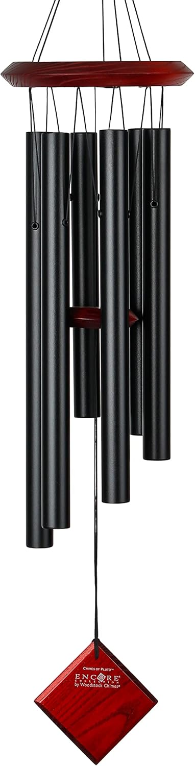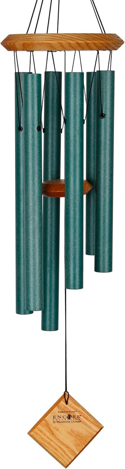 Product Description This wind chime is designed and handcrafted for superior musical performance. It is hand-tuned to a universal, pentatonic (five-note) scale and acts in concert with the wind to create random patterns of wonderful sound. Harmonizes beautifully with all the other Encore Collection windchimes. PRODUCT FEATURES. Measuring 27-inches in overall length (total hanging length is measured from top of gather ring to bottom of wind catcher), this chime features a wood top and windcatcher with a beautiful Bubinga finish that is weather-resistant, and 6 high-polish silver aluminum tubes that will not rust when exposed to the elements. EASY CUSTOMIZATION. The removable windcatcher can be taken to a trophy shop, printer or jeweler to be engraved or silk-screened. WOODSTOCK THE ORIGINAL MUSICALLY TUNED CHIME. Tuned to beautiful melodies and scales from around the world and available in a wide range of styles, songs and sizes, you can choose the Woodstock Chime that speaks to your soul. HOW IT ALL BEGAN. Garry and his wife Diane founded Woodstock Percussion, in 1979 and it remains a family-owned business in New York's Hudson Valley. Grammy award-winning musician Garry Kvistad created the first Woodstock Chime from an aluminum lawn chair he found in a landfill. As a professional musician and instrument designer, he was fascinated by the Scales of Olympos, a 7th century pentatonic scale that can't be played on a modern piano. Garry had the idea to cut and tune the lawn chair chime tubes to the exact frequency of the ancient scale. The resulting Chimes of Olympos was the first Woodstock Chime and is still one of our bestselling wind chimes. Amazon.com Sing back to the birds with the bell-like tones of Woodstock Percussion's 27-inch Encore Collection Diamond chime. Using the breeze to make music, the chime features a diamond-shaped wind catcher that moves in the air. A circular disk on the same cord taps the hollow musical tubes and makes them ring. Handcrafted and weather-resistant, Woodstock Percussion's chimes are at once stout and elegant. On this instrument, a strong black cord suspends chimes and disks alike, threading through an ashwood support at the top. Each wooden piece is finished with an attractive beveled edge and a rich mahogany stain. This silver chime is tuned to an ancient pentatonic scale. Company founder Garry Kvistad has developed an advanced method of tuning used on every Woodstock chime: Each tube is analyzed digitally with a microphone under the tube measuring the frequency, and cutters are instructed to remove just the right amount of material to produce the most precise tuning possible. The result is a purer, more harmonious sound. --Emily Bedard