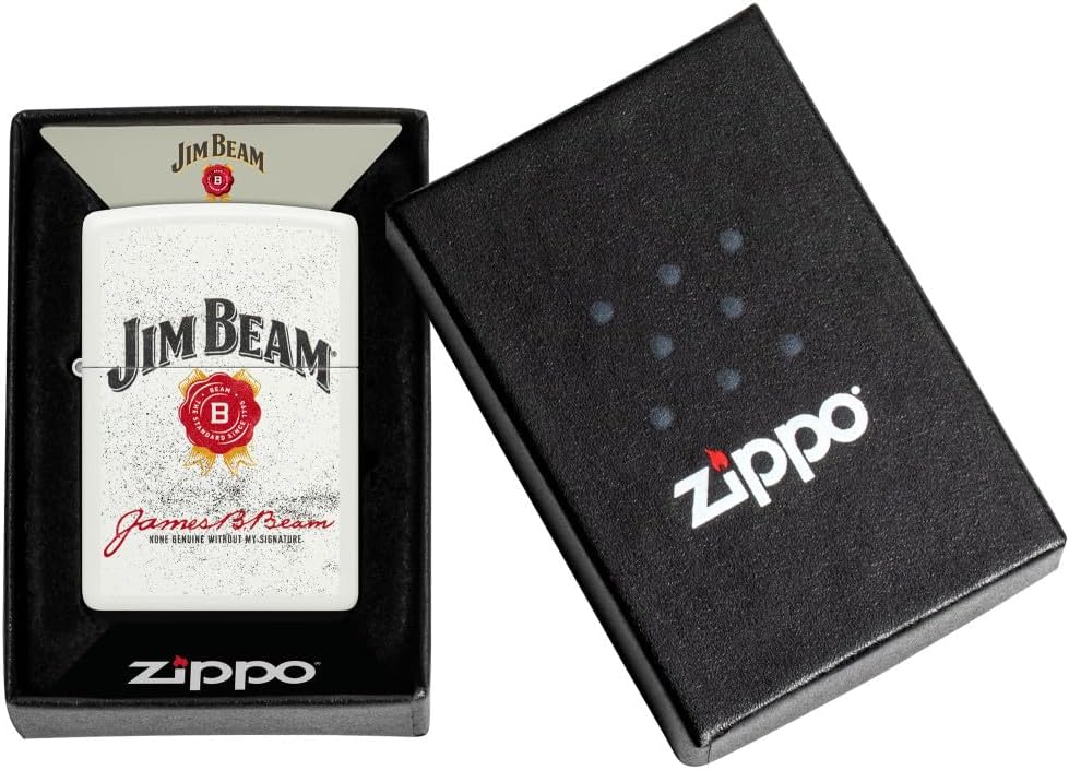 Cheers to a classic, Jim Beam and Zippo go hand in hand. Each Jim Beam design was created with the signature Jim Beam style. Designs are created using various imprint methods; emblem, color image, rotary engrave, auto engrave, and laser engrave. Finish on various base models; Black Crackle, Black Ice, Brushed Brass, Brushed Chrome, High Polish Black, Herringbone Sweep, High Polish Brass, 1935 Replica, White Matte, High Polish Chrome, and Satin Chrome. There is surely a model for each Jim Beam enthusiast. Each lighter has a bottom stamp signifying the year it was made, is refillable, and is backed by Zippo's famous lifetime guarantee. All windproof lighters are American made in our Bradford, PA factory and come packaged in a gift box.